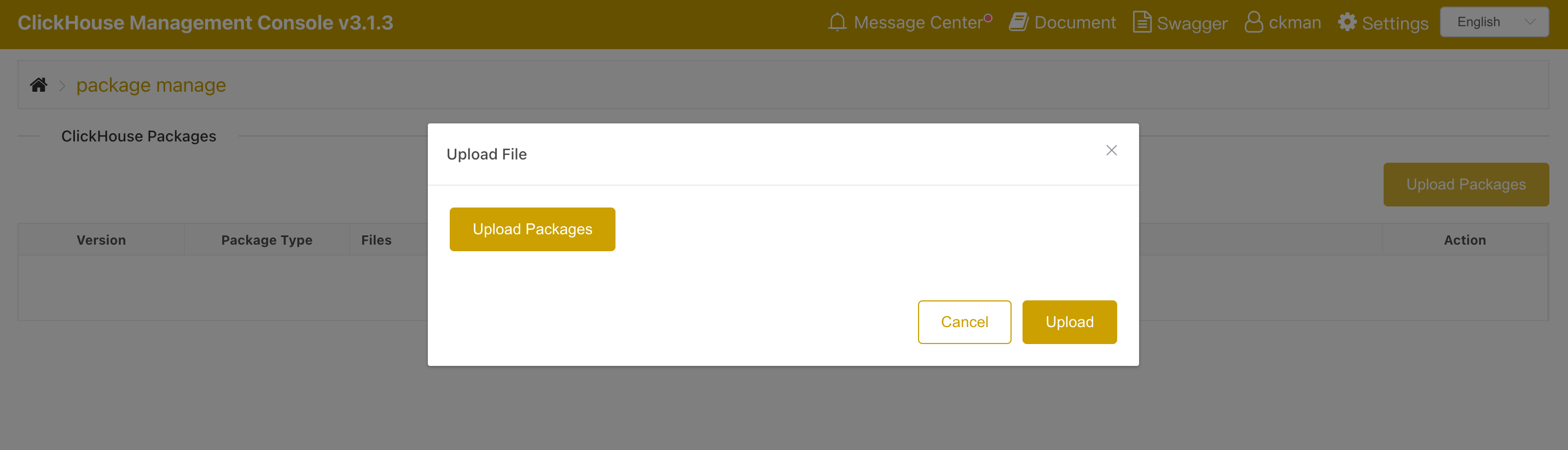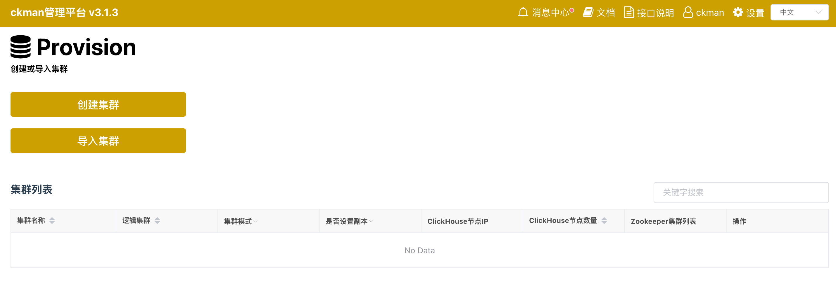 - ckman是一款管理和监控ClickHouse集群的工具。它通过前端界面直观展示集群的相关信息,可以便捷地对集群进行部署、升级,节点的增删等。