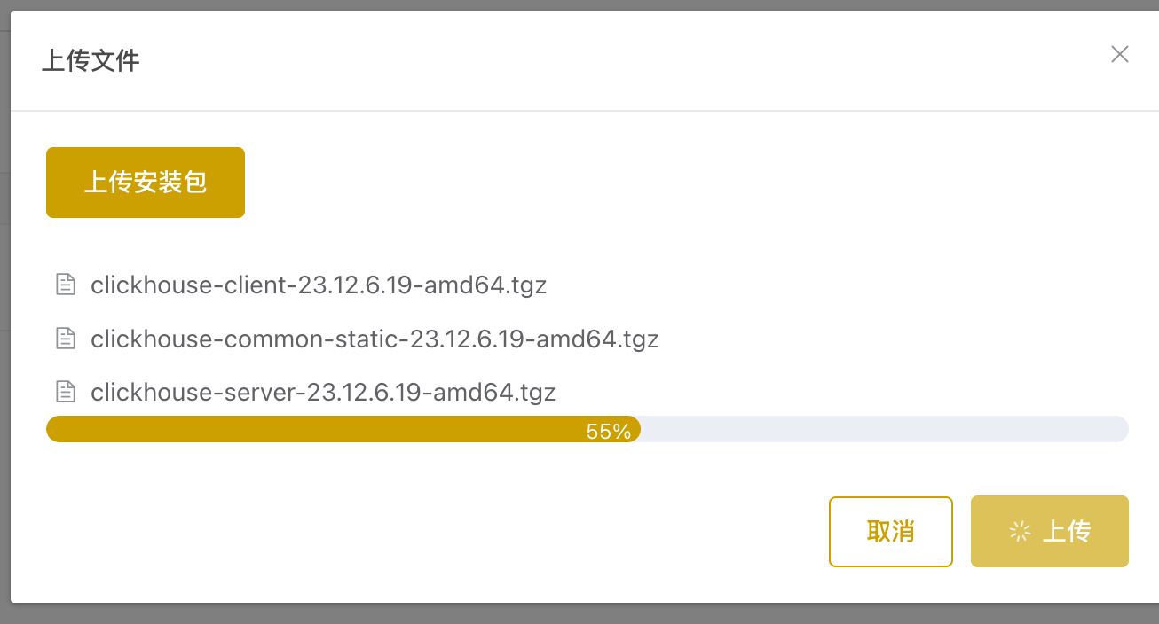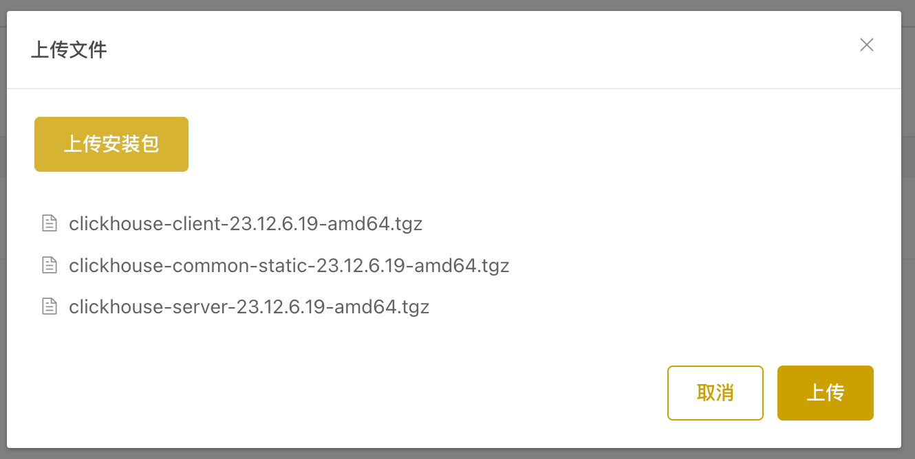 - 但是上传完包后,仅显示 clickhouse-common-static 包,系正常现象