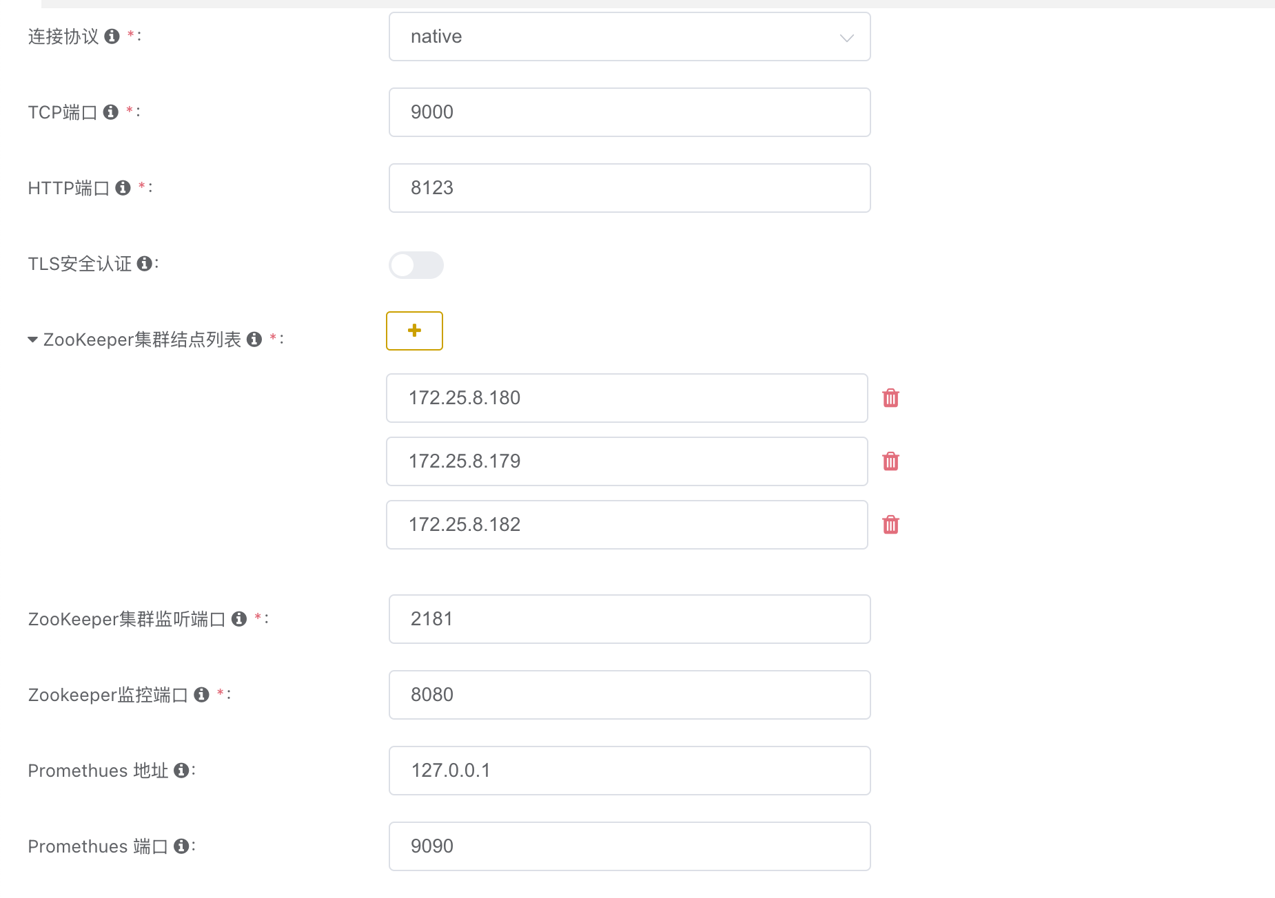zk1 | 172.25.8.180 | zookeeper | /app/aookeeper | zookeeper | zookeeper 集群节点 1 |
