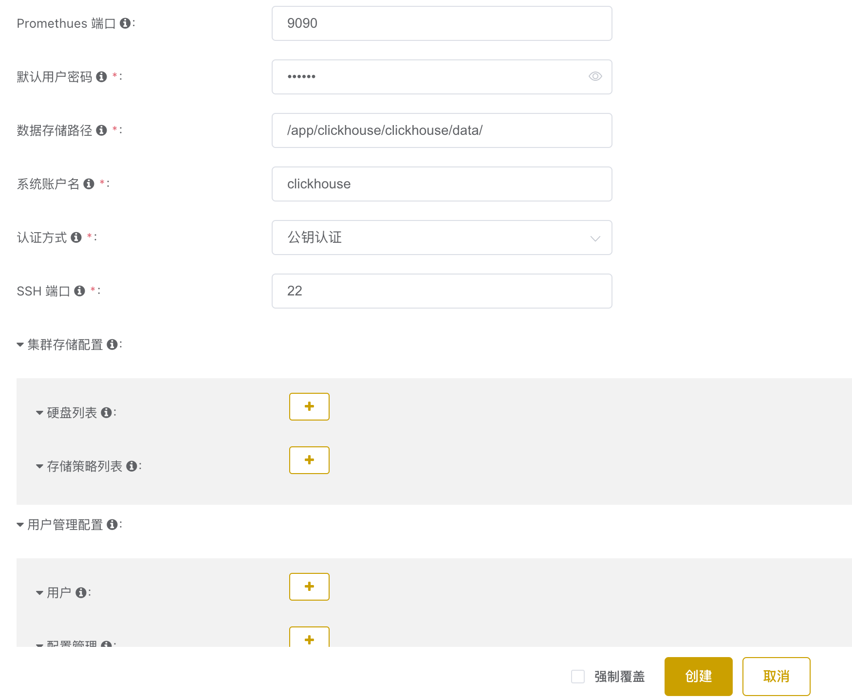 - 配置 ck 数据目录、ckman 连接 ck 服务器的用户名、端口等