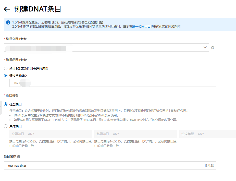 配置 DNAT,将外网 IP 映射至内网 NAS 访问 IP