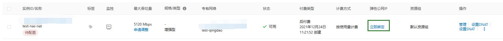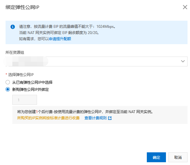 如果已有未绑定 EIP,可直接绑定,反之可选择新建 EIP